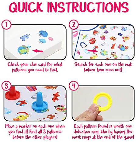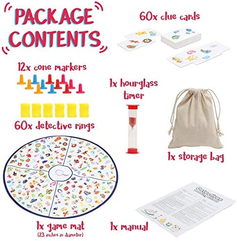 🎁PLAY FOR HOURS WITH THESE COMPLETE SET – You will get a large matching board mat,60 clue cards, 1 sand timer, 60 detective rings, 12 cone marks, 1 instruction sheet, and 1 storage bag. The set is ready to play with and can be played and enjoyed for hours and over and over again. It’s a great gift for birthdays as well as stocking stuffers for Christmas or even easter basket stuffers.