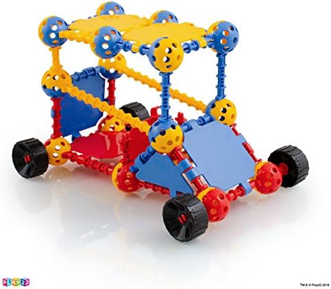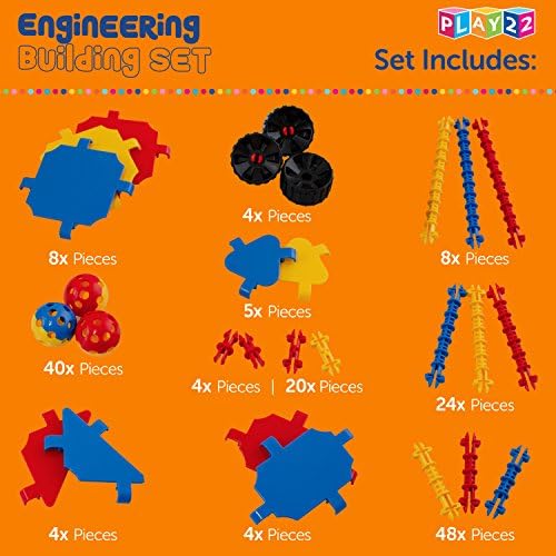 Engineering Building Set Is To Design Your Own Toy – Create Cars, Robots, Machines and More – Learn Spatial Reasoning – Stimulate Problem Solving Skills – Unleash Creativity and Imagination – Educational Construction Toy Blocks Building Set Perfect For STEM Projects, Classroom Activities And Family Games, Ages 3, 4, 5, 6, Years and Up. – Engineering Building Set Includes 40 Connecting bolls and 8 Big Squares 4 Rectangles 4 Long Triangles 5 Small Triangles 8 Extra Long Connectors 24 Long Connectors 48 Medium Connectors 20 Small Connectors 4 Wheels 4 Wheels Connectors Storage container (10. 5″ x 7. 5″) Idea Guide Great Gift for Birthday and Holidays for Boys & Girls. – Original – By Play22