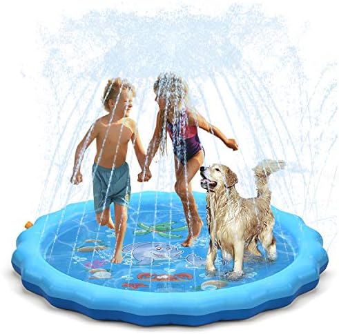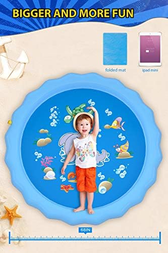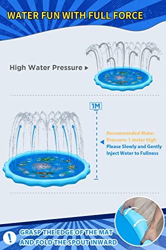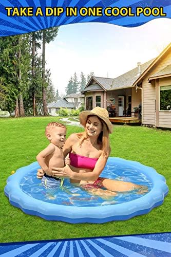 Bigger 68″ Splash Play Mat – QPAU outside toy can be used as your mini swimming pool. The ring around the outside had small holes where the water comes up. It allows your 2-4 kids to play with their water toys in the circle of the kids pool with sprinkler.