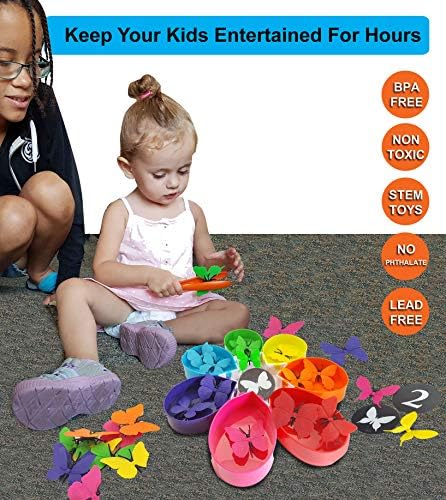 FINE MOTOR SKILLS TOYS: Children improve dexterity, hand-eye coordination and fine motor skills development control as they play educational games. The counting butterflies toddler learning toys with matching color petals make fun learning toys for 3 year olds. Use as occupational therapy toys for toddlers, dramatic pretend play, preschool games and elementary k-3 learning resources. After play with the daycare supplies, dismantle & put away the color sorting toys for toddlers into the toy bag.