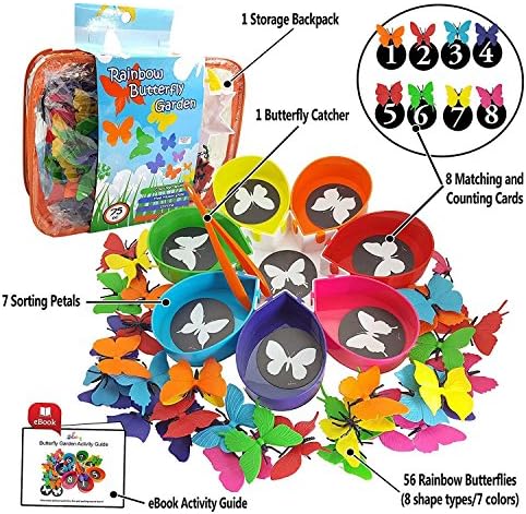 ✅ TRAVEL PRESCHOOL TOYS: Travel toys includes a backpack as a toy storage container to hold all the jumbo colored flower sorting petals and sensory butterflies. This sorting toys for toddlers set is made of durable plastic and are SAFE FOR YOUR CHILD. They are independently Third-Party Lab Tested. Certified Non-Toxic and BPA-Free, Lead-Free and Phthalates-Free. Ebook with toddler learning activities is included to get the most out of the kids toys.