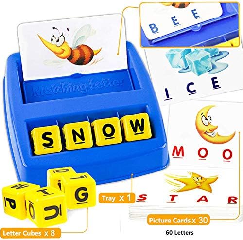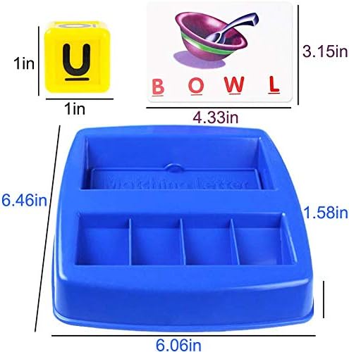 【PREMIUM VALUE PACK】: The 3 in 1 spell learning matching letter game comes with 1 tray, 8 large alphabet cubes, 30 colorful picture cards with 3 and 4 letter words on double side(60pcs English words), 1pcs game board, an English user manual.