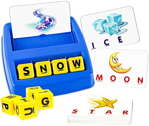 The spelling board game toy allows children to make the connection between objects and their names while having fun with the cards and letter cubes. Match and spell board game can be used to teach children alphabet, language and spelling literacy skills.
