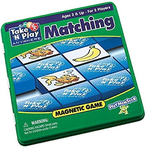 Take ‘N’ Play Anywhere games feature big magnetic playing pieces that are easy for kids to use and hard for kids to lose! The convenient 6 3/4″ square tin case makes it easy to slip the games into most bags to take everywhere and keep kids entertained on a trip, waiting at the doctor’s office, dining out, while stuck in traffic or just visiting grandma’s house!