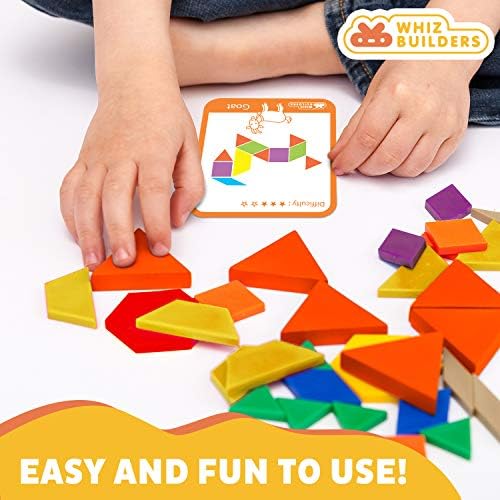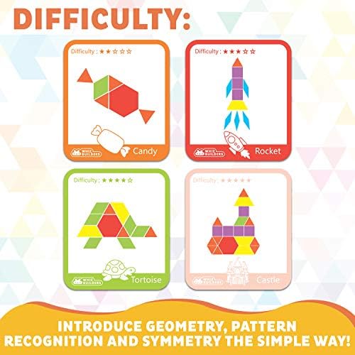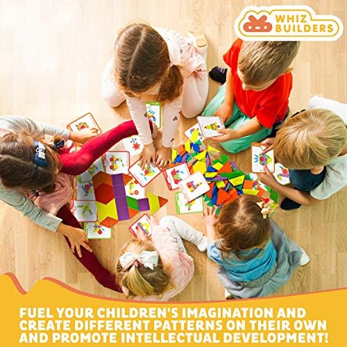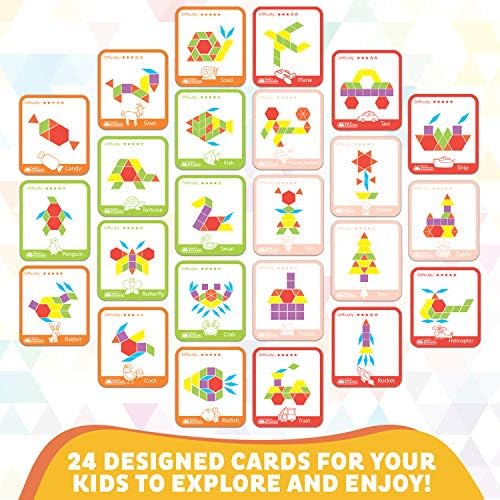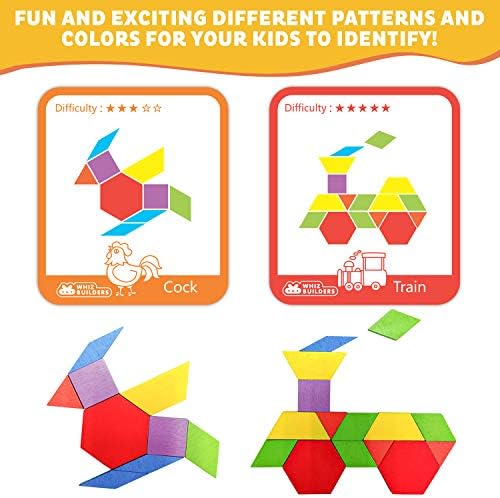 CHALLENGE CREATIVITY: The wooden blocks for kids ages 3 and up comes with pattern cards that show various shapes and objects that your little one can make using the pattern wooden shapes making it the perfect choice for kids that love solving puzzles