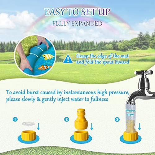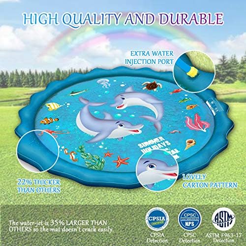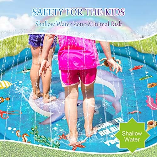 【Safety Play Spinkler Pad】The toddler outdoor toys are made of thick BPA free PVC material, no harmful chemicals while playing. Shallow water is designed to reduce the risk of drowning and better protect the safety of children. This shallow wading pool and water sprinkler promises uncompromised quality and is BPA and phthalates free.