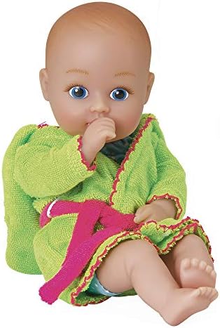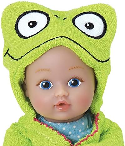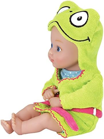 Size: 8.5” Adora Doll Exclusive QuickDri Body Ready to splish-splash in the bath or pool Already in my swimsuit Removable animal themed hoodie bathrobe 100% Machine Washable Fresh baby powder scent Sweet ADORAble face Ages 1 and up Splish – Splash Adora’s BathTime Baby Tots are sweet and petite baby dolls, perfect for the bath, pool or any water fun These cute mini babies are 8.5” tall with a soft and cuddly body and fresh baby powder scented vinyl. Your little one will have a tough time choosing between a frog, owl, bunny, kitty and elephantyou just might have to get them all BathTime Baby Tot Frog comes with their very own removable green frog themed bath robe that when taken off shows an adorably cute blue swimsuit printed body. This water toy has an exclusive QuikDri body that will dry in no time and will be ready to play again With their sweet faces and adorable animal themed bathrobes, this water baby doll will provide hours of nurturing playtime fun. Your little one will want to bring them to bath time, every time Best of all they are 100% Machine Washable, so after a trip to the playground, beach, park or pool, wash them, lay them flat to dry and they’ll be fresh and clean again Ages 1 and up.