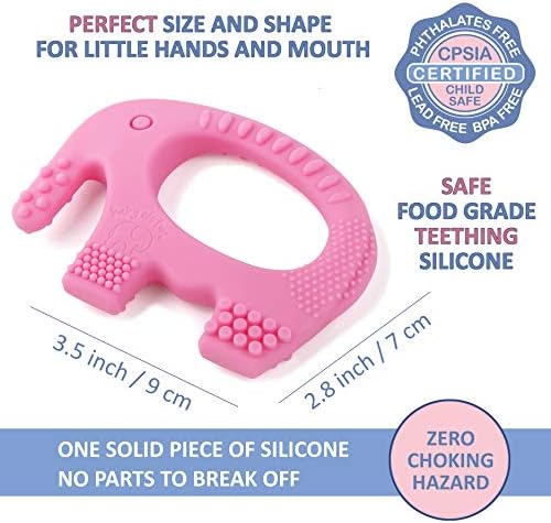 Toys for Babies Under One: Baby Girl Teething Toys – BPA Free Silicone – Cute, Easy to Hold, Soft and Highly Effective Elephant Teether – Teethers Toy Best for Freezer, Little Girls 0-6 6-12 Months, Babies Shower Gifts