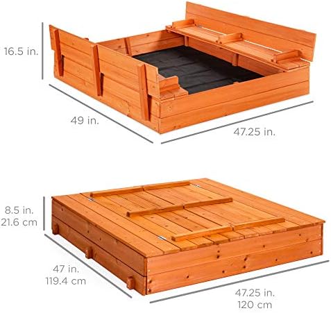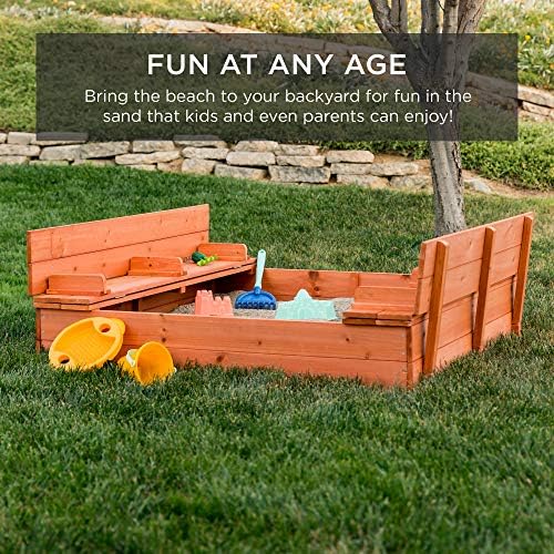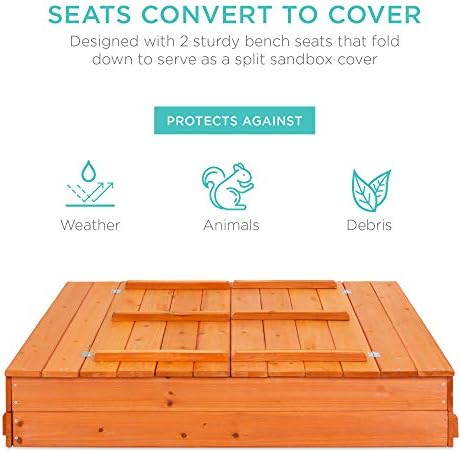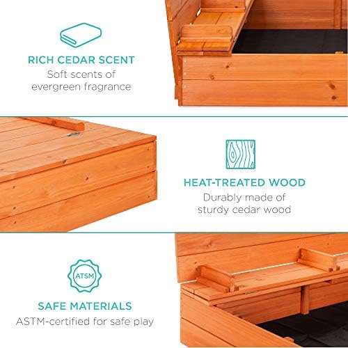 CEDAR WOOD: Heat-treated cedar wood helps the sandbox remain sturdy and durable for a playtime solution that lasts through your child’s younger years