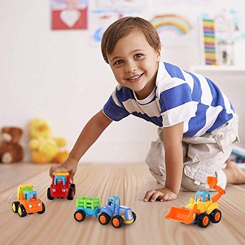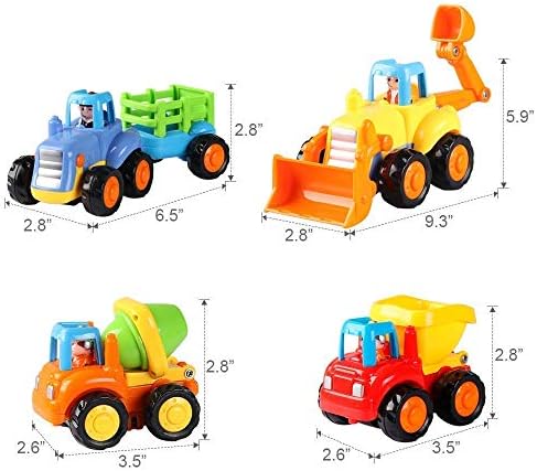 No Batteries Required: friction powered with moving mechanisms are super easy to power with no loud noise. Colorful sturdy trucks were a great hit and completely new to your kid’s truck collection. Good size and easy for small hands to grip.