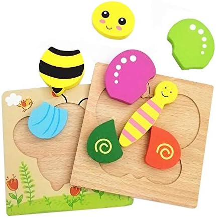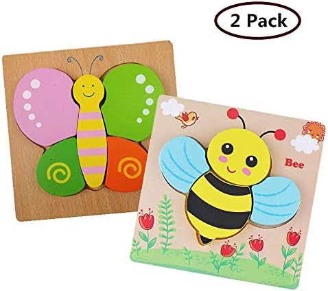 ❤【 Includes 】Set of 2 wooden jigsaw puzzles toys for toddlers, butterfly, bee, animals theme kids puzzle.