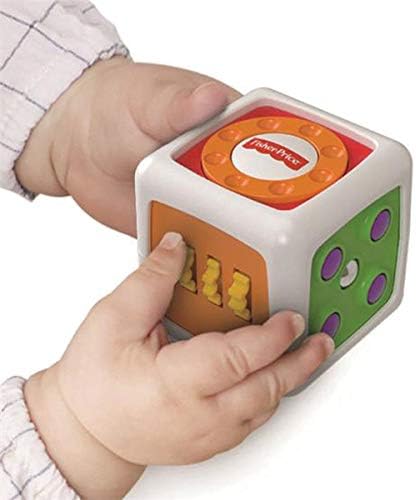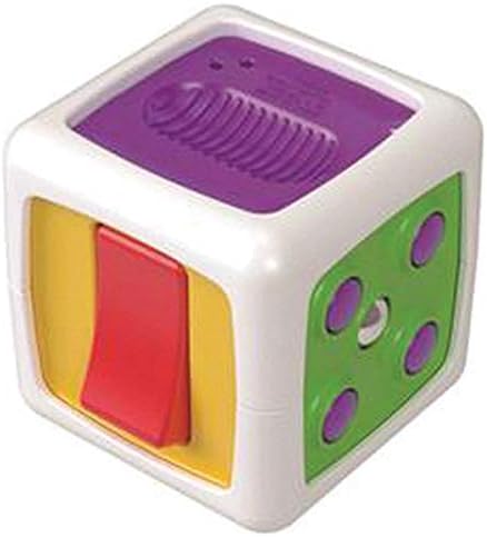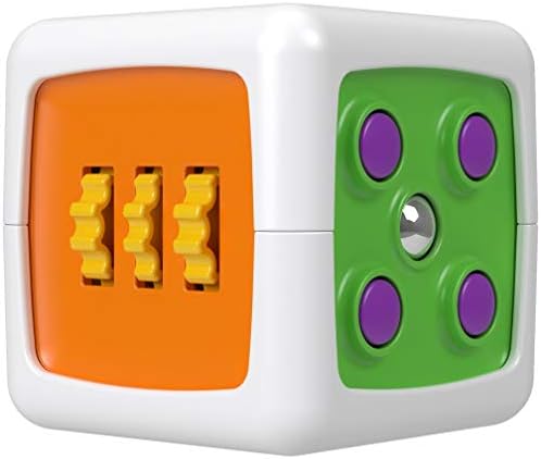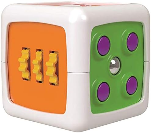 “From colorful clickers to spinning rollers, a toggle switch and more, this cube is loaded with exciting activities for tiny fingers to explore! With six sides of unique fine motor skill-boosting play and a variety of colors and textures, this activity block will keep your little one busy as a bee! Where development comes into play Fine Motor: Little hands can strengthen dexterity by grasping the block and pressing, spinning or pushing the different activities. Sensory: All that clicking, spinning, and exploring will engage and excite your baby’s developing tactile and auditory senses! Curiosity & Wonder: Little ones are introduced to cause & effect as they toggle and push to hear clicking sounds.”.