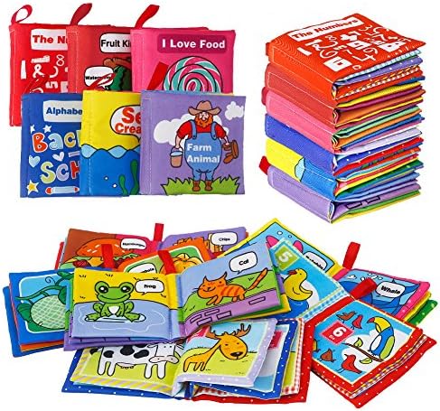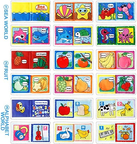 👧 【6 BOOKS】: The baby cloth book set has 6 topics which include – Alphabet world, Fruit kingdom, Sea creature, I love food, Farm animal, and The numbers. Your next babies first words should be educational!