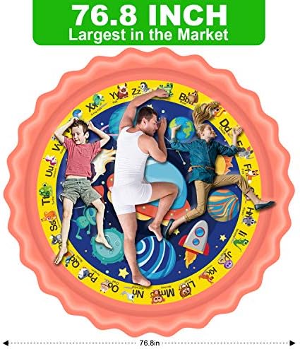 Biggest Size in the Market: 76.8″ diameter is super big enough for even more than 4 kids to enjoy playing on the water mat. They can stand or lay on it to enjoy cooling off body under hot day.