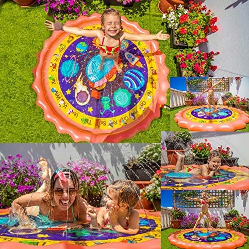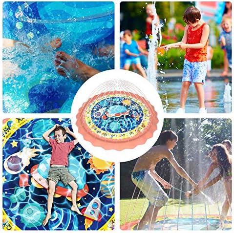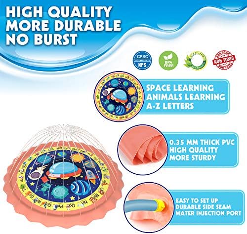 More Sturdy and Made of Heavier Materials& No Burst: Many customers complain that the splash mat they buy can easily burst. One of the reasons is that most of splash pad material is 0.2-0.25 mm thickness. Our 0.35 mm thickness perfectly solve the burst problem. You will no worry about the burst problem and kids will enjoy the whole hot summer without burst problem.
