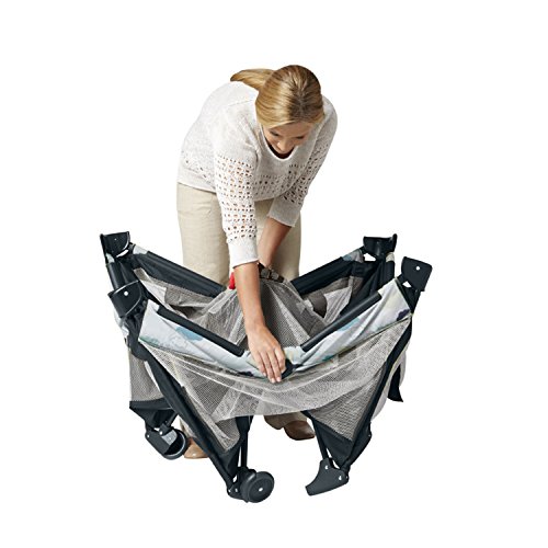 You want your little one to be comfortable no matter where you go and Graco wants to make that easier for you. With the Graco Pack ‘n Play Playard On The Go, in Stratus, you have a removable full size bassinet that provides the perfect spot for baby to catch a nap, as well as automatic folding feet and wheels which make it perfect for travel. The signature Graco push-button fold allows you to break the baby play yard down quickly and with no hassle. At home or away, baby will be kept comfy and cozy. Care and Maintenance: Clean with household soap and warm water/drip dry. No bleach. Machine wash carry bag in lukewarm water/drip dry. If Playard gets sandy, carefully remove sand from all surfaces before packing into bag as sand can damage top rail lock. Recommended Use: For use by children unable to climb out, less than 35″ tall. Bassinet for babies under 15 lbs. and unable to push up on hands and knees. FALL HAZARD: To help prevent falls, do not use this product when the infant begins to push up on hands and knees or weighs over 15 lbs (6.8 kg), whichever comes first. The folded height is 29 inches and the folded width is 10.5 inches.