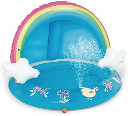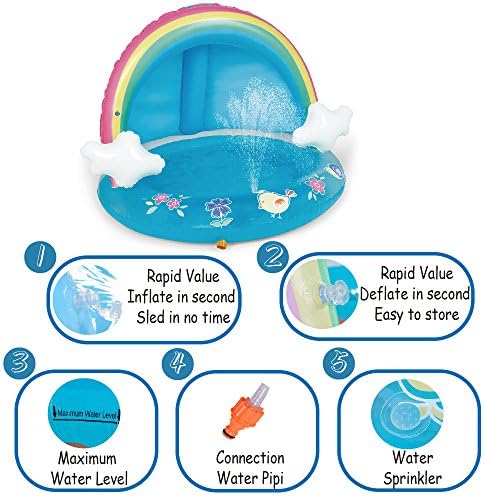 Unique Design with Shade and Sprinkler: Our rainbow baby pool with canopy for kids or baby or pets, Rainbow Canopy protection to keep babies sensitive skin safe from harmful sun rays.It is a perfect inflatable water toys outdoor.