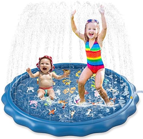 Fun Sprinkler for Kids: 60″ diameter sprinkler mat water-filled Splash Play Mat for kids babies 1 2 3 4 5 6 7 8 9 10 Year Old Boy Girl and up Toddler. Water toys backyard outside for toddlers