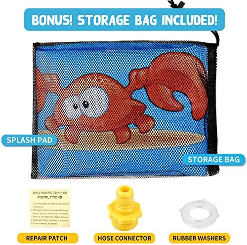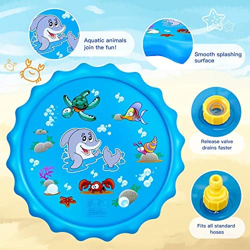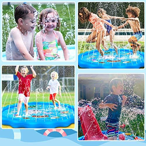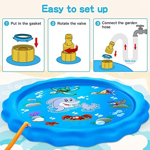 Latest Upgraded Sprinkler for Kids [Superior Material]- Our kids water toy splash pad is made of imported heavy duty PVC material without BPA; 22% thicker than most outdoor toys to ensure durability.The water injection port is designed with waterproof gasket for easier installation Every child loves playing with water, especially when the weather is hot outside. Provide them with tons of fun with this splash pad–all you have to do is hook the kiddie mat up to the hose and you are ready to go.