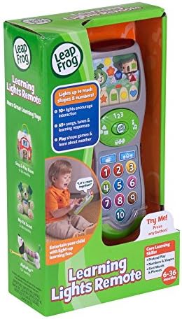Keep little ones entertained in a big way with a pretend-play remote that introduces numbers, shapes, first words and more! with more than 65 songs, tunes and learning responses from an irresistible light-up screen, the LeapFrog learning lights remote helps children ages 6 to 36 months tune into early learning concepts as they imitate mom and dad. With the LeapFrog learning lights remote, little ones can press up, down, left or right to hear counting and numbers songs, play a shapes game with the delightful puppy pal Scout, or Count along with him. They can press the channel buttons to hear how Scout has fun in all kinds of weather or to help him Count shapes in his garden. The number buttons prompt a counting activity, which encourages little ones to Count bright-colored shapes that light up on the screen. Lovable Scout is always at their fingertips to entertain, encourage and help children explore. The light-up remote comes with 3 AAA batteries, which should be replaced for home use.