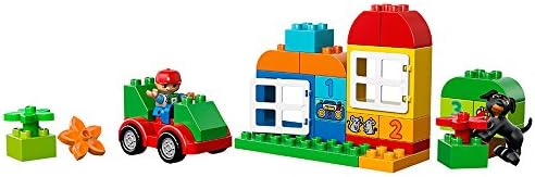 This LEGO DUPLO creative box includes one DUPLO boy figure and one dog figure, windows that open, wheels that roll, and numbered and extra pieces which can be built into endless combinations of toy houses, cars, trains, trees, and so much more!