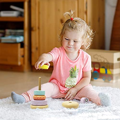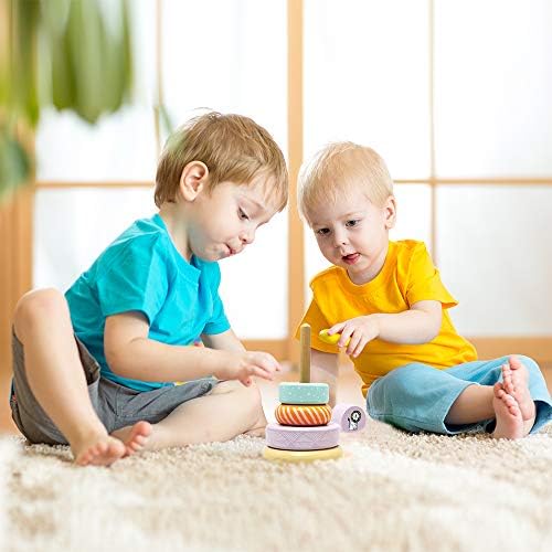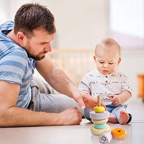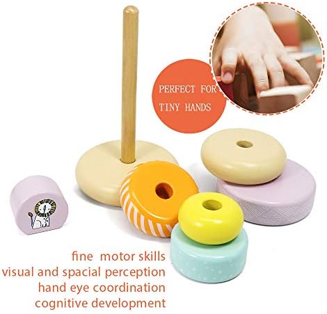 SAFE MATERIAL: Our baby toys made of premium wood.Baby wooden stacking rings are safe and 100% non-toxic varnish and waterborne paint,do not worry about the paint will come off or your kids will swallow pieces of paint