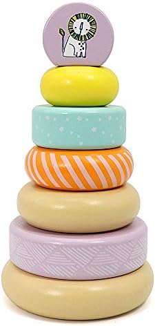 UNIQUE DESIGN FOR TODDLERS:This stacker toy include 7 smooth rings and 8 inch Tall.Compare with other original stacking rings,our Australia designers use 7 different colors(purple,orange,light green) with 3 different patterns,alice lion paint on the top.Great for developing color,size,pattern recognition of toddlers.