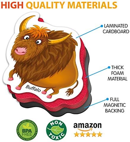 ✅ PERFECT GIFT: Our kids fridge magnets are made of durable lightweight foam surrounding, laminated cardboard layer and full magnet backing. Big magnetic animals were specially made for little babies hands. Recommended for AGE 3+