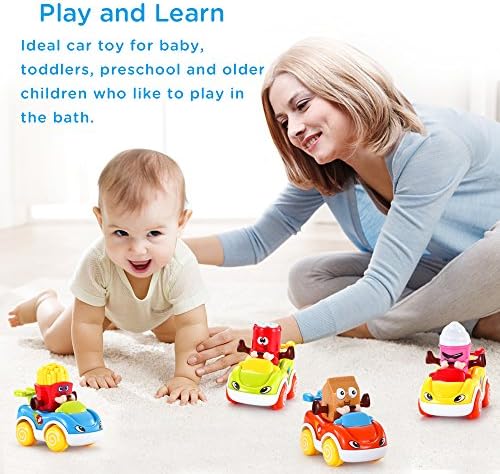 GREAT EARLY EDUCATION TOY SET: Babies can recognize and learn different colors and food from the vehicles set. The funny car toy can be used to teach kids vocabulary and language skills through play time.