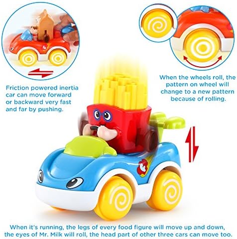 CREATICVE DESIGN: Unique fast food design can attract children’s interest. When sliding, the legs and the rear part of the each toddler car toy will move up and down, which will attract children to observe and develop the ability of hand-eye coordination and imagination. Best gift ideas for toddler boy.