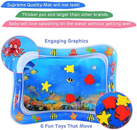BEST TUMMY TIME TOY: Enjoy the water time without getting wet! Your infant baby would be fascinated by the bright sea world graph and cute floating toys in the water. Parents can also have a fun time for watching the baby laugh and play