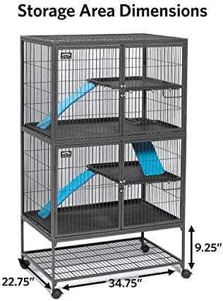 Ferret Nation’s wide expanse shelf & full width leak proof pan provides maximized play area & prevents dangerous falls