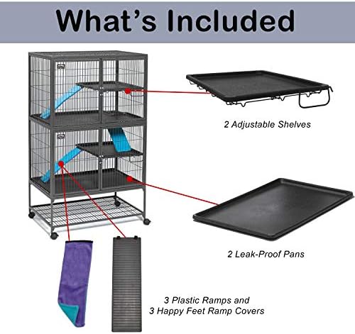 Full width double doors on ferret nation cage and removable shelves provide maximum accessibility for easy cleaning & feeding
