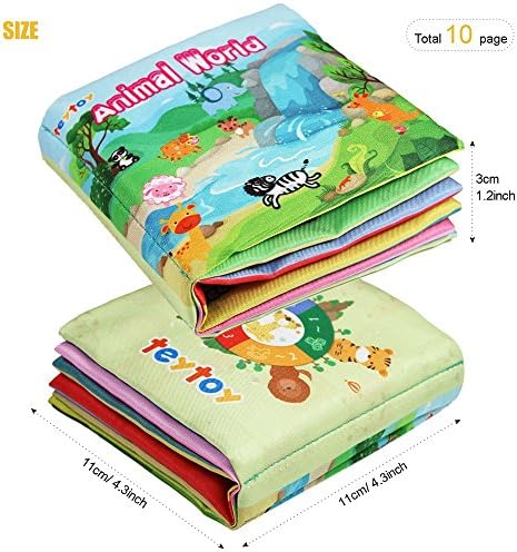 Engaging Cloth Books for Little Hands and Minds,With multiple activities and textures, these adorable cloth books are equipped with bold colors, vibrant images and 2D animations that will keep your baby engaged and amused. Each book is crafted with premium thick cotton cushioning that is very soft and plushy to the hand. Each page is a new adventure with animals and landscape, fruits and numbers.