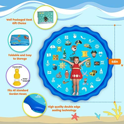 Summer is coming,let kids keep cool in the hot days and have fun outdoor games. This 68″ splash pad is perfect water toys for kids outdoor, the water toys would be the great gift for 1 2 3 4 5 6 7 8 9 10 year old boys and girls.