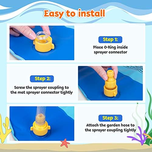 Easy to Use and Store –Just plug it to a garden hose or PVC tubing, simply adjust water pressure to lower or higher the spray height. The sprinkler pad could be folded small size(like a book) for easy storage. Do not forget to place small waterproof ring into hose connection to avoid water leakage.
