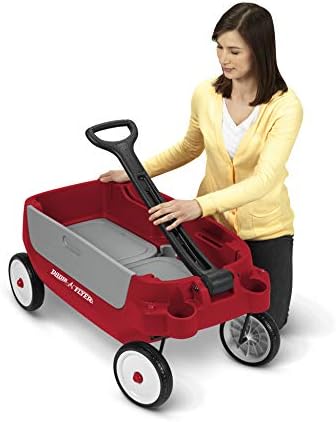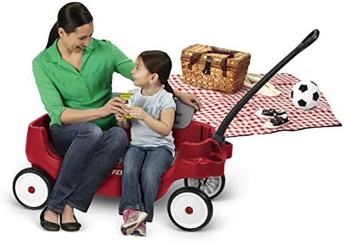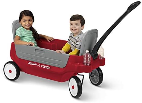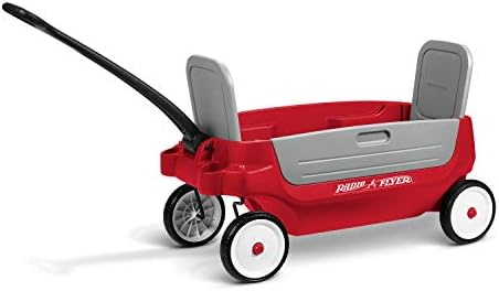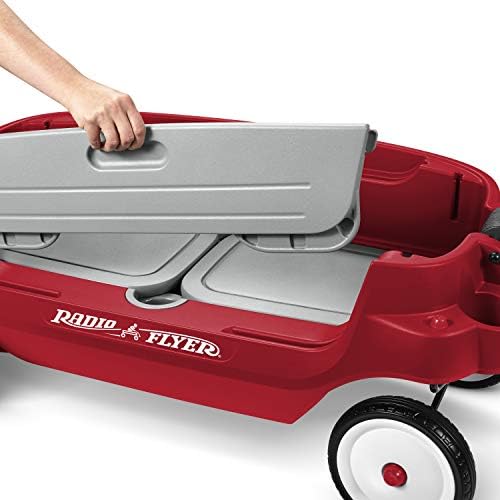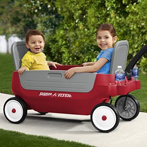 From sidewalks to sidelines, the new Radio Flyer grandstand wagon 3-in-1 provides 3 seating options. The first stage is comfortable seating for 2 during neighborhood strolls. Flatbed seating provides hauling capacity and naptime comfort. The newest seating option is bench seating. With a simple rotation of the side panel, the wagon transforms to a bench for at the park, game or event. The 4 cup holders, handle folds over for easy storage and seatbelts for added safety make this a great wagon for family outings. For ages 1 ½ + years.