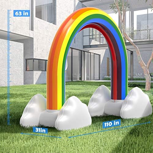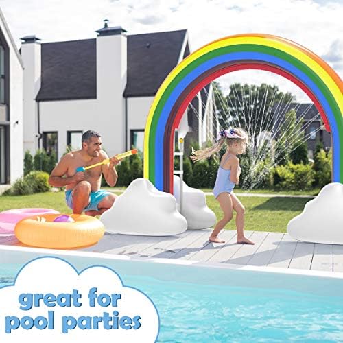 🌈【Cool, Fun and Party Decoration】Consisting of two clouds and one rainbow, make summer fun for your kids without going to the beach or swimming pool. Suitable for Beach,Pool,Lawn,Yard or indoor party decoration, gift! not only for the kid’s summer toys, but perfect for kid’s birthday/party decoration