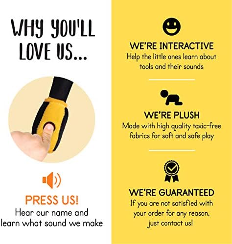 Learn about the tools – perfect for young boys; these plush soft stuffed toy tools will help promote fine motor skills, vivid imagination, and creativity. Turn playtime into a learning moment, boost your child’s confidence, and help your small kids learn about building tools and their sounds!