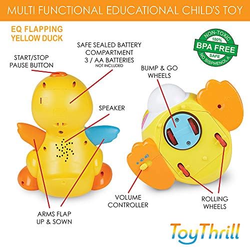 ToyThrill thrives on! Our Duck Toy is an amazing plaything for your toddler to get a grasp on the many aspects of growth it needs – auditory senses, visual development, color, music, balance, movement, animal sounds, and more! With our Duck Toy, you will find your baby extremely enthralled each and every day before and after nap time so it can get the education it needs to grow.