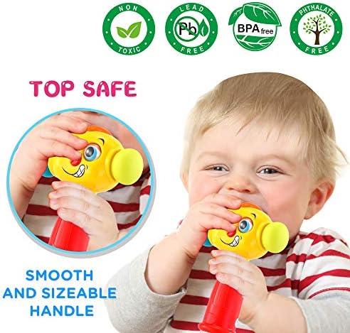 As the baby is active, our soft rubber baby hammer toy with smooth, sizeable handle can prevent your 12- 18 months + baby from harm.