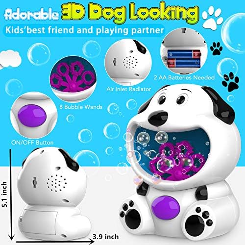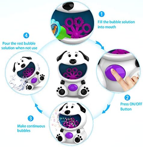 [Simple and Easy to Play] Adorable 3D dog bubble machine makes it easier to attract kids’ attention. 4OZ bubble solution included, simple and easy for kids to operate and refill. Kids are free to carry this lightweight bubble toys with them wherever they go.