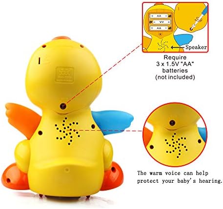 √ Sturdy and Durable Gift:This Multifunctional Musical Dancing Duck Toy can withstand bumps, scratches, and falls, sturdy enough for your babies to play with. Ideal Christmas Gift, first Birthday Gift, Holiday Gift or just as a New Gift for Babies Toddlers Kids Girls Boys. This cute pre-kindergarten toy can be dropped from the dining table multiple times, and it never affected it. Highly recommend it!