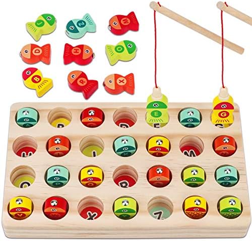 Fun Way to Learn Alphabet: The Magnetic Wooden Fishing Game is a great educational toy to develop your toddlers hand and eye-coordination as well as motor skills. Alphabet Fish Games challenging enough to keep kids entertained, yet easy enough to promote confidence.