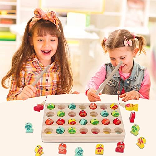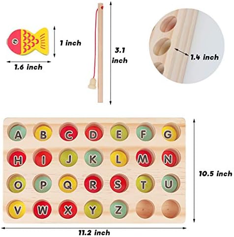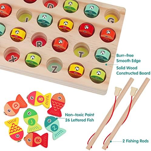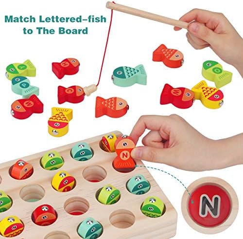 Easy to Play: The wooden fishing game toy could be used with your finger to sort/match the letters or use the magnetic fishing rods available. 2 fishing poles included, kids can play the fishing game with friends. It definitely teaches the concepts of patience and lots of fine motor skills for kids.