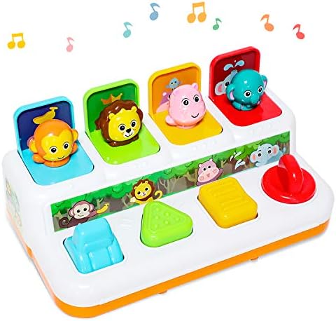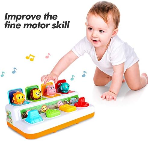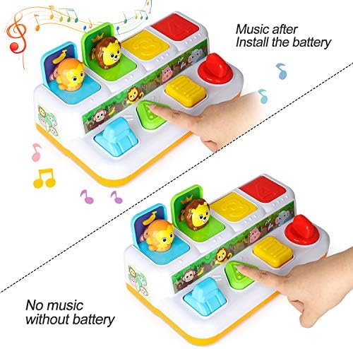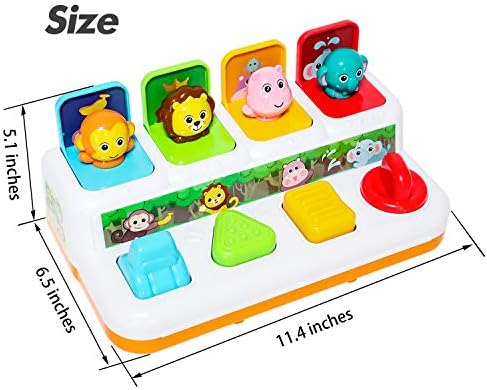 Let your baby start a journey of exploration and discovery. Cute animal will pop-up with great music when push, press, and spin the button. It’s a very good toy for baby playing.