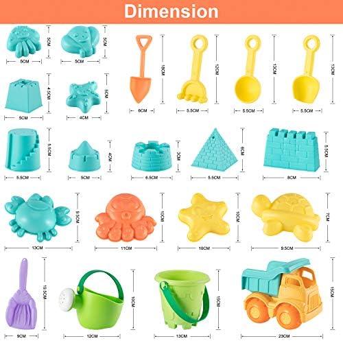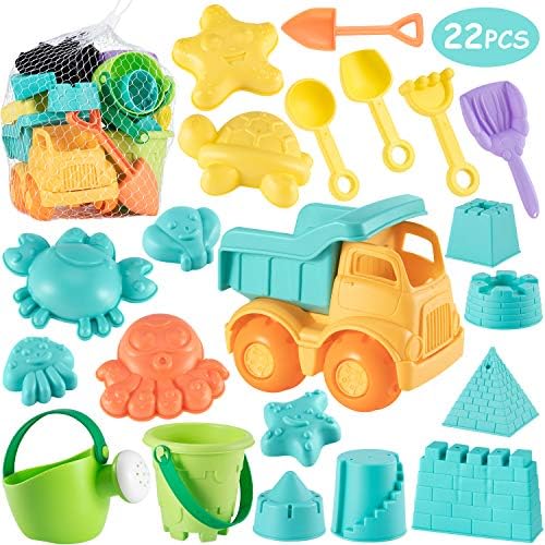 【Premium Quality】Fun and colorful 22 pieces kids beach toys will let children spend a creative day on the beach. Every sandbox sand mold toy is made of high-quality non-toxic and BPA free material and the smooth edge design can reduce the risk of scratches, which ensure the quality of the beach toys and the safety of children.
