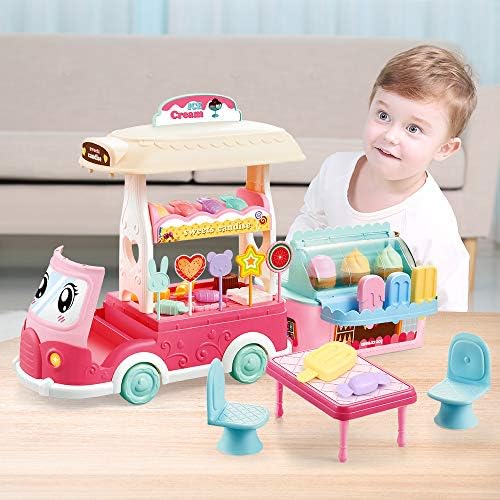 Toys for Toddlers: BeebeeRun Ice Cream Cart Toys for Toddlers – 50 PCS Ice Cream Truck for Kids and Play Food Selling Car with Ice Cream Candy Lollipop, Gift for 2 3 4 5 Year Old Girls