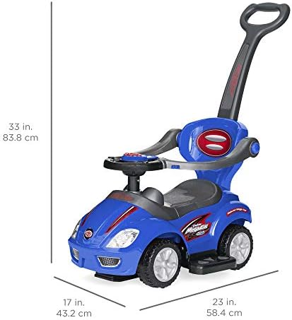 BACKREST: Your little one is supported in all 3 of the cars transformations, so they can lean back and have a safety net if they lose their balance; OVERALL DIMENSIONS: 23″(L) x 17″(W)” x 33″(H) (w/ handle); Weight Capacity: 50 lbs.