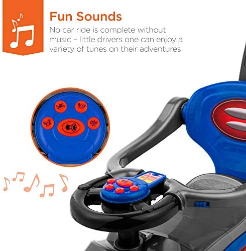 INTERACTIVE SOUNDS: The steering wheel is equipped with buttons so your child can beep the horn or select a variety of tunes during their car ride